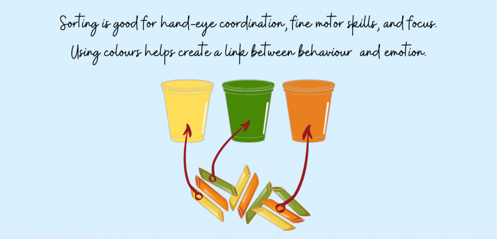 Sorting is good for hand-eye coordination, fine motor skills, and focus.
