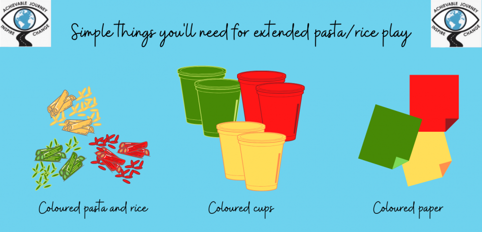 Building on my earlier blogs on activities using coloured pasta and rice, here are ways you can extend these activities if the individual requires a greater level of engagement of a more detailed challenge.
